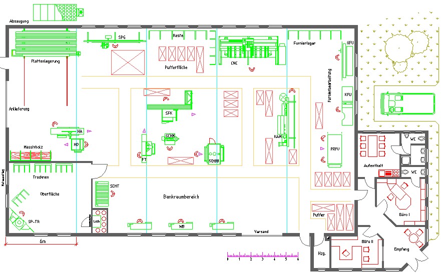 | Planungsbeispiel 2: | Innenausbaubetrieb mit bis zu sechs handwerklichen Mitarbeitern (s. auch Planungsbeispiel 1:) |